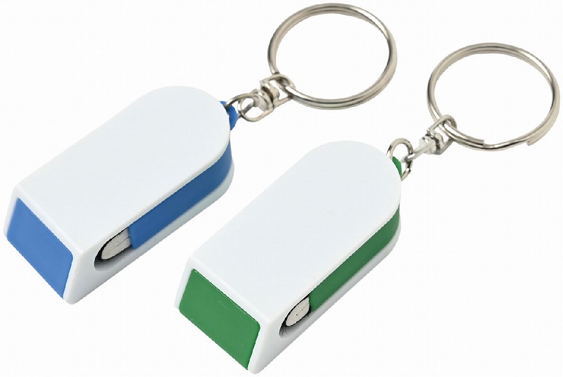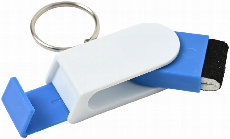 キーリングの付いたコンパクトなボディにスタンドとクリーナーがセットされています。