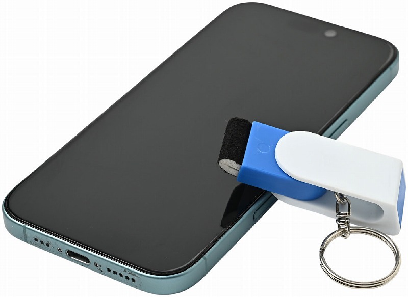 ”販促品 ノベルティ グッズ” 『クリーナー付スマホスタンド(キーリング付)』