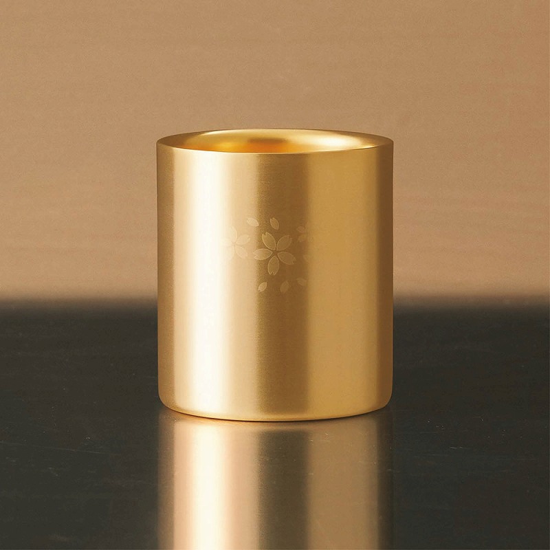 側面サテン仕上のステンレスタンブラーを高級感漂う金メッキを施し、桜の花びらで飾りました。金メッキは金属臭を感じさせない為、口当たりが良く、飲み物を美味しくいただけます。また抗菌性にも優れていますので安心してご使用できます。
