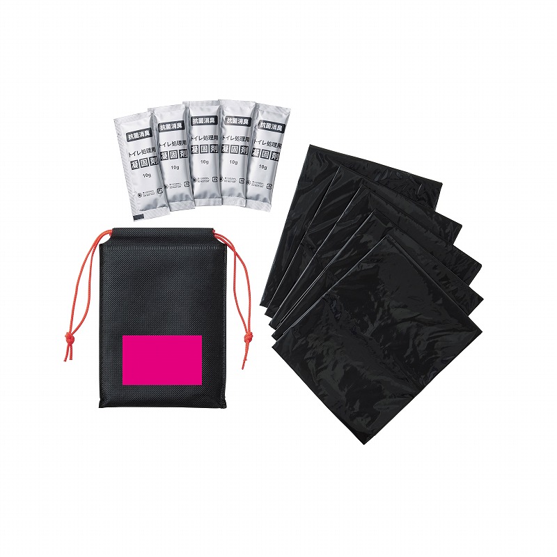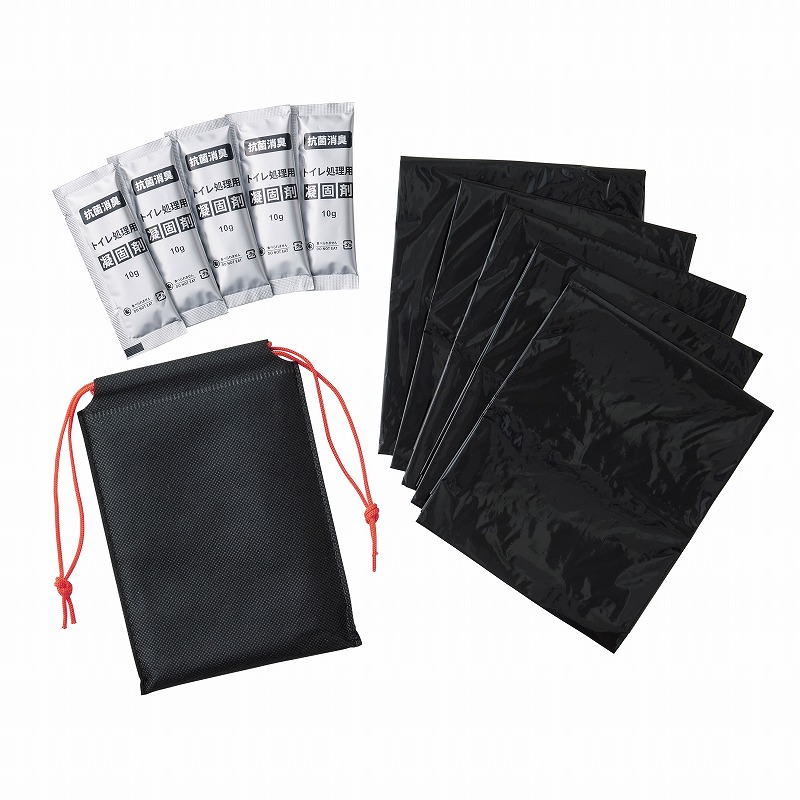 セット内容:凝固剤(10g)×5袋・汚物専用黒色ポリ袋(30L)×5枚