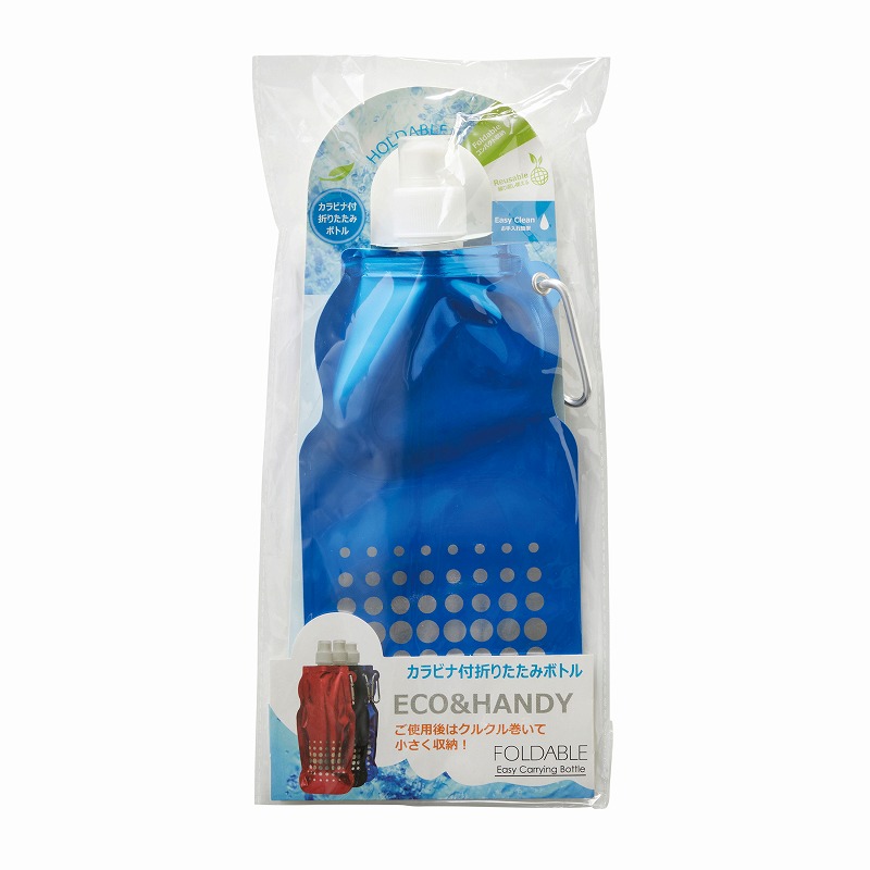 ”ロゴ入れ、名入れ・記念品・ノベルティに!” 『カラビナ付折りたたみボトル500ml』