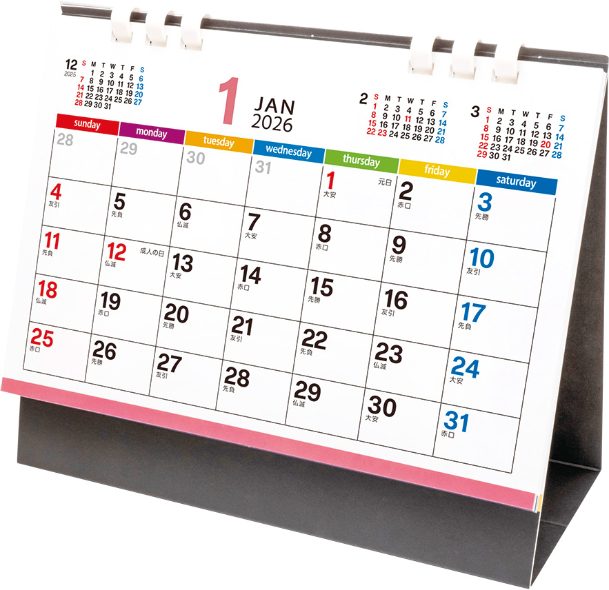 紙製リングを使用した100%紙製の環境にやさしい卓上カレンダー。 廃棄する際に分別する手間も省けます。 前月と2ヶ月先までの4ヶ月分を一覧でき機能的です。 ■箔色:ゴールド、シルバー、メタリックレッド、メタリックブルー、メタリックグリーン ■日本製