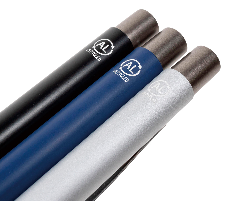高級感と重厚感のあるスタイリッシュなボールペン。 更にリサイクルアルミを使用しているから環境にも優しくSDGsグッズとしても提案できます。 ■ドイツ製インク使用/0.7mm黒