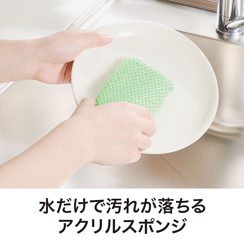 アクリルスポンジは油汚れをすっきり落とし、メラミンスポンジは水回りのしつこい汚れに活躍します。
