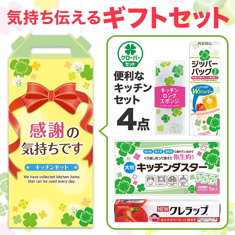 NEWクレラップ22cm×10m・キッチンロングスポンジ・ジッパーバッグ(3枚入)・キッチンダスター(1枚入) 各1 食品検査済(クレラップ・ジッパーバッグ)