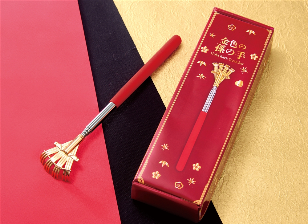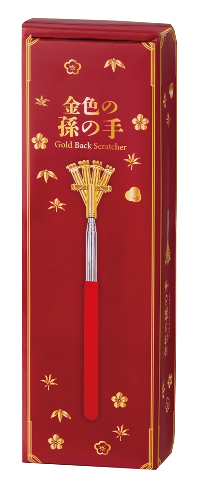 熊手の形をしたインパクト大なゴールドに輝く孫の手! 年末年始やシニア層へのベルティに最適な目を惹くアイテムです。