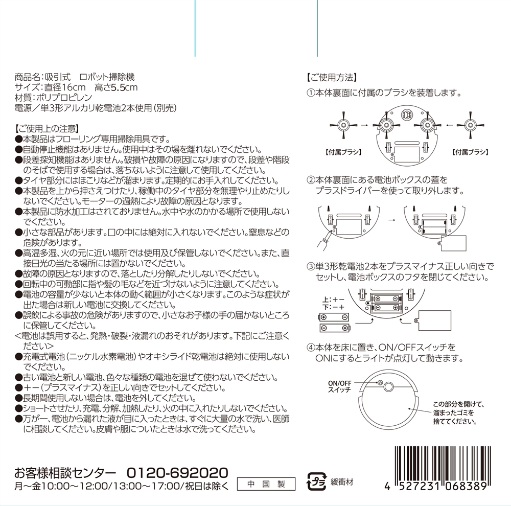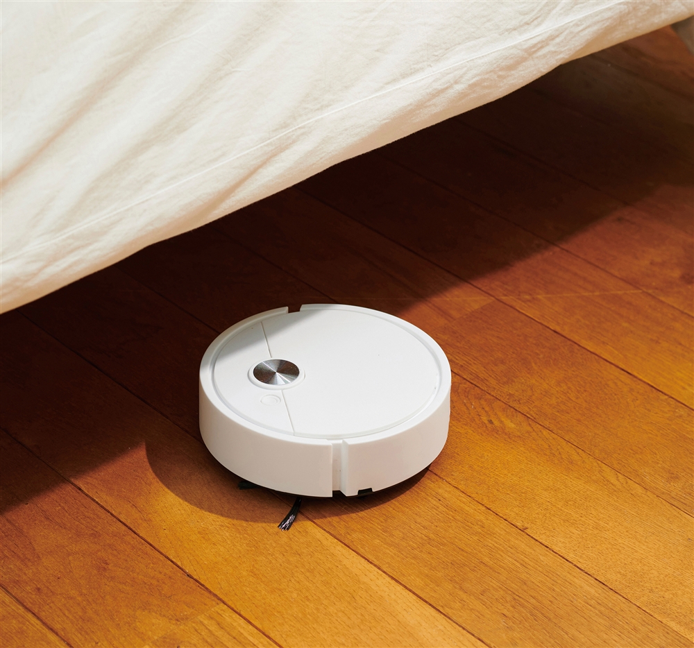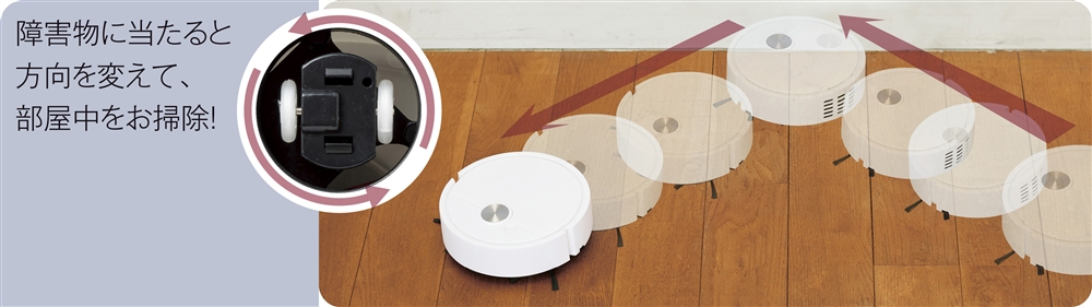 壁や障害物に当たるとクルっと方向を変えて部屋中をお掃除!掃除が終わったら本体底面のダストボックスの蓋を開けて簡単ゴミ捨て。一人暮らしや小さいお子さまがいる家庭など、なかなか掃除する時間が取れない方たちに嬉しいロボットクリーナーです。