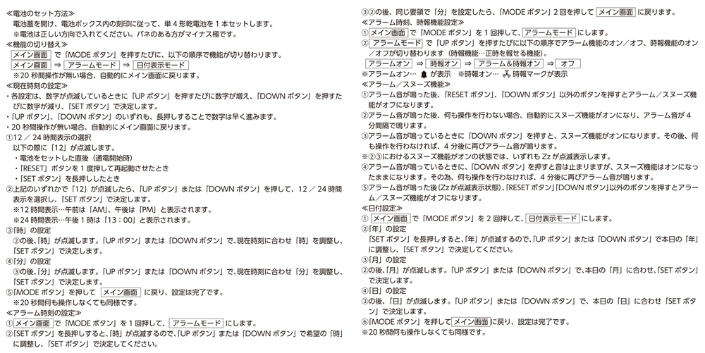時計機能をメインとして温度計や湿度計機能が付いた多機能時計のカテゴリです。※温湿度計がメイン機能の商品は、温度・湿度計のカテゴリをご用意しております。