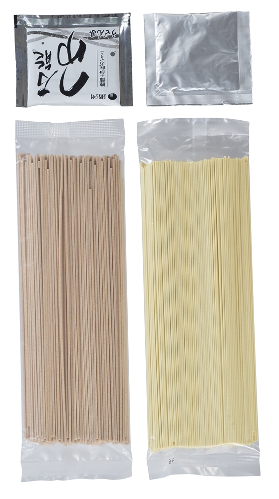 <セット内容> そば(乾麺)180g×1 ラーメン(乾麺)150g×1 そば用万能つゆ20ml×2 ラーメン用醤油スープ(粉末)7g×2