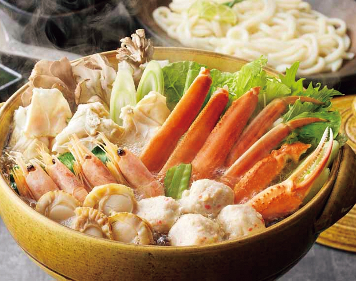 蟹好きの期待を裏切らないボリュームたっぷりの具材とご家庭で白菜や人参などの野菜をご用意いただき、醤油仕立てのタレでお召し上がりください。シメはうどんでどうぞ!