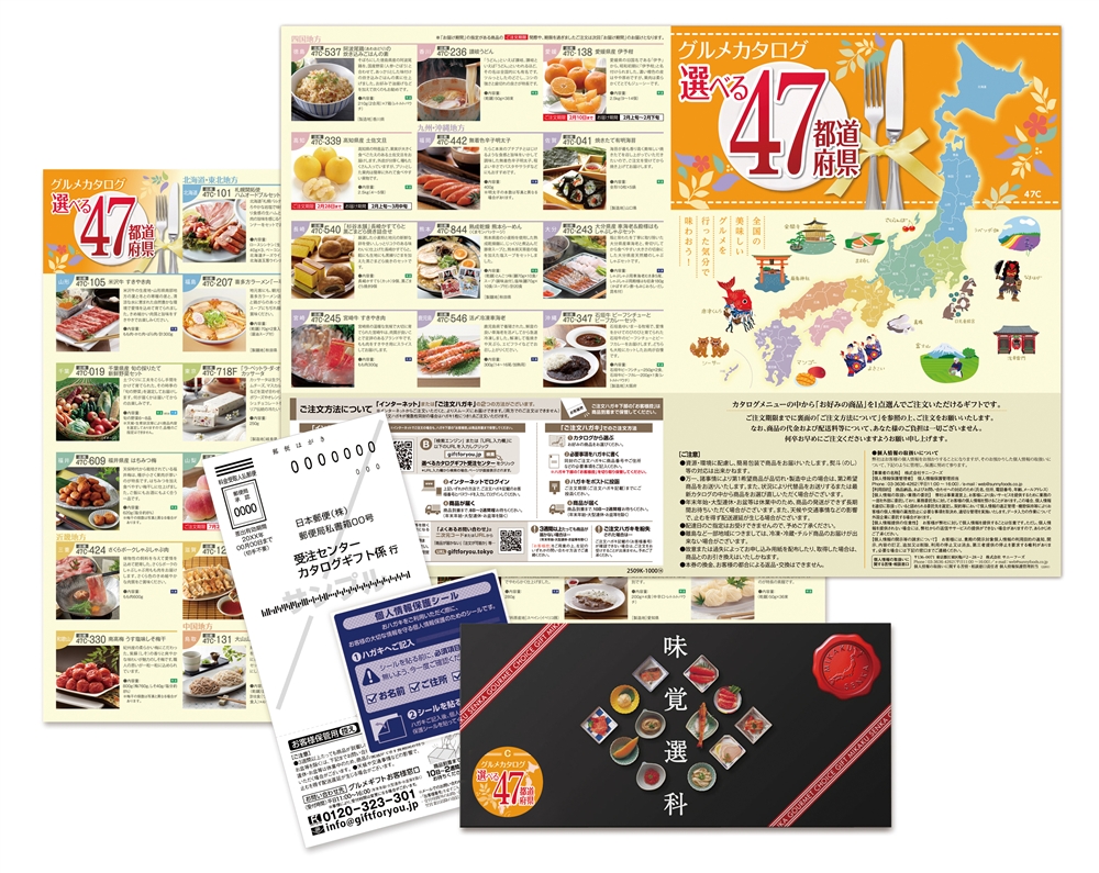 全国47都道府県のグルメギフトメニューの中からお好みの商品をお1つお選びいただき、WEBか同封のご注文ハガキでご注文頂きます。