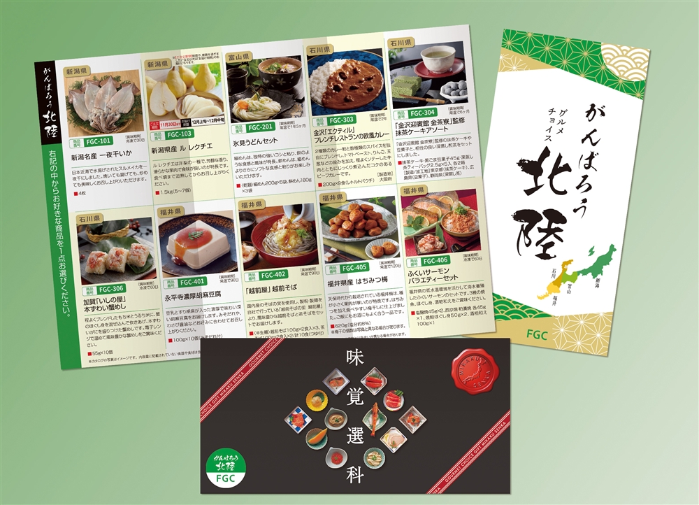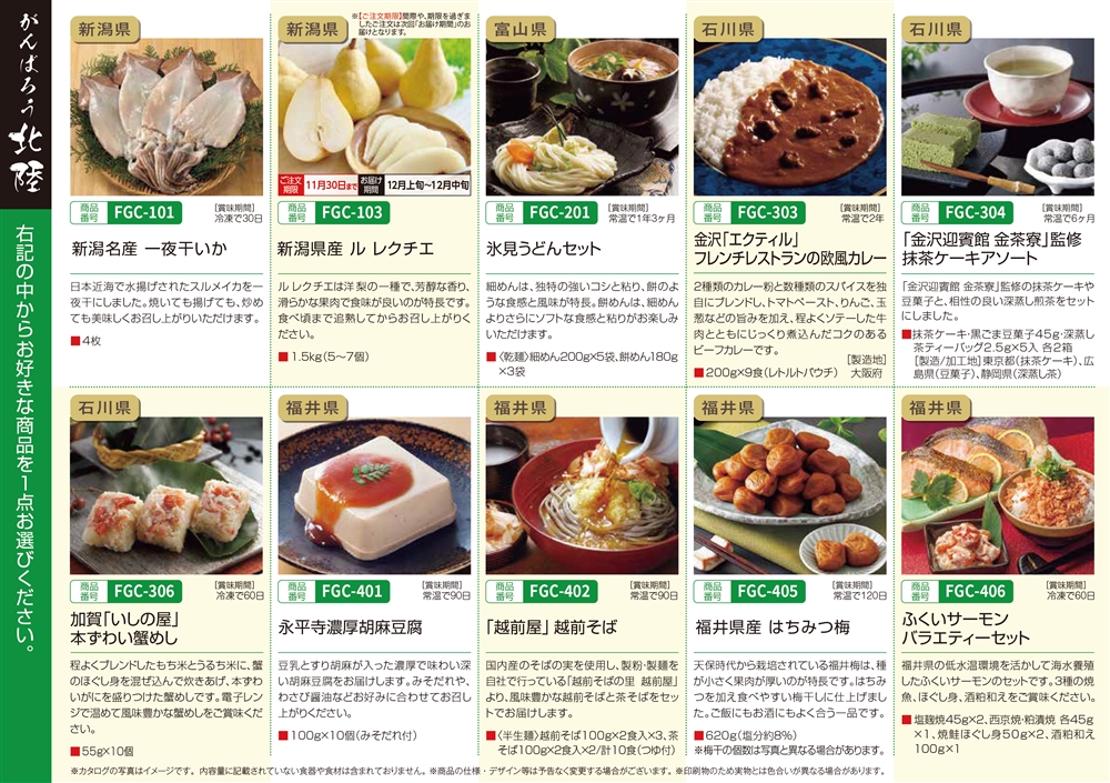 北陸エリアを応援する気持ちを選べるギフトに込めました。ギフトメニューの中からお好みの商品をお1つお選びいただき、同封のご注文ハガキでご注文頂きます。ご注文から10日~2週間程でご希望商品をお届け致します。冊子タイプのカタログギフトです。