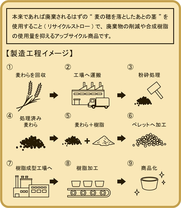 本来なら廃棄されてしまう「麦わら」をアップサイクル。