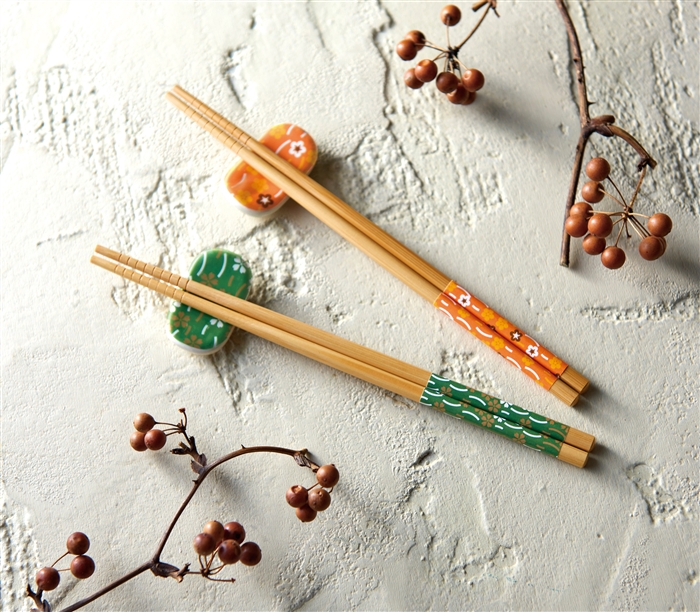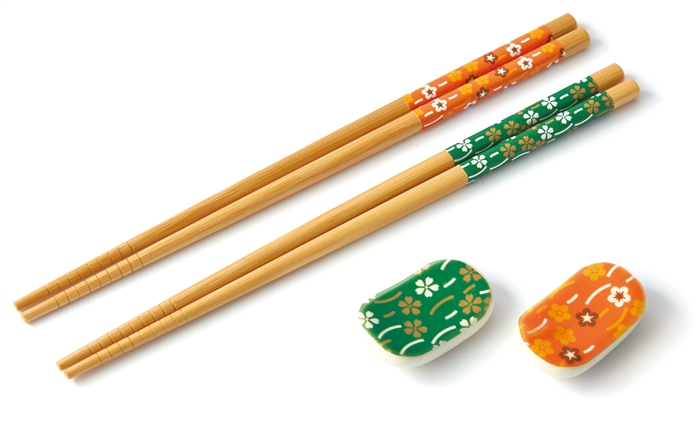 箸/竹(ウレタン塗装) 箸置き/陶器