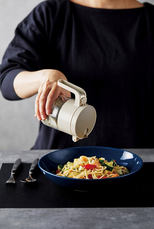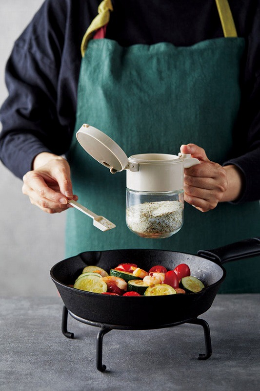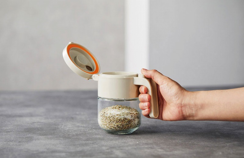 フタを開けてスプーンですくうだけでなく、 逆さまにして直接振りかけることもできる、 便利で機能的なガラス製の調味料ポットです。