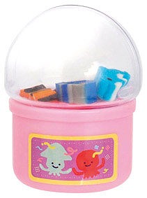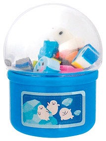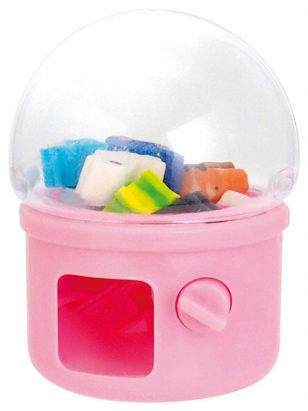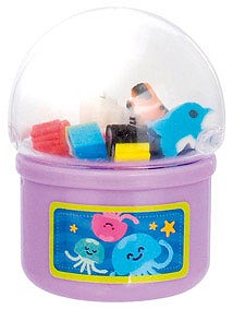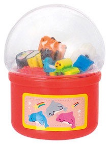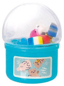 カプセルマシンに入ったかわいい海の生き物の ミニ消しゴムがツマミを回すと出てきます。