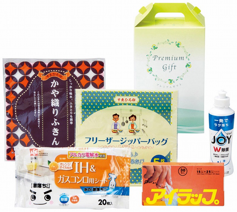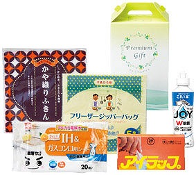 セット内容/フリーザーバッグ5枚入・アイラップミニ30枚入・食器用洗剤・かや織りふきん・お掃除シート20枚入