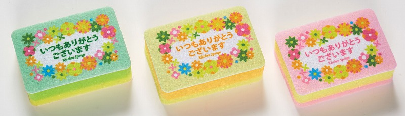 ”低価格 安いノベルティ 粗品” 『「いつもありがとう」 キッチンスポンジ(1コ入)』
