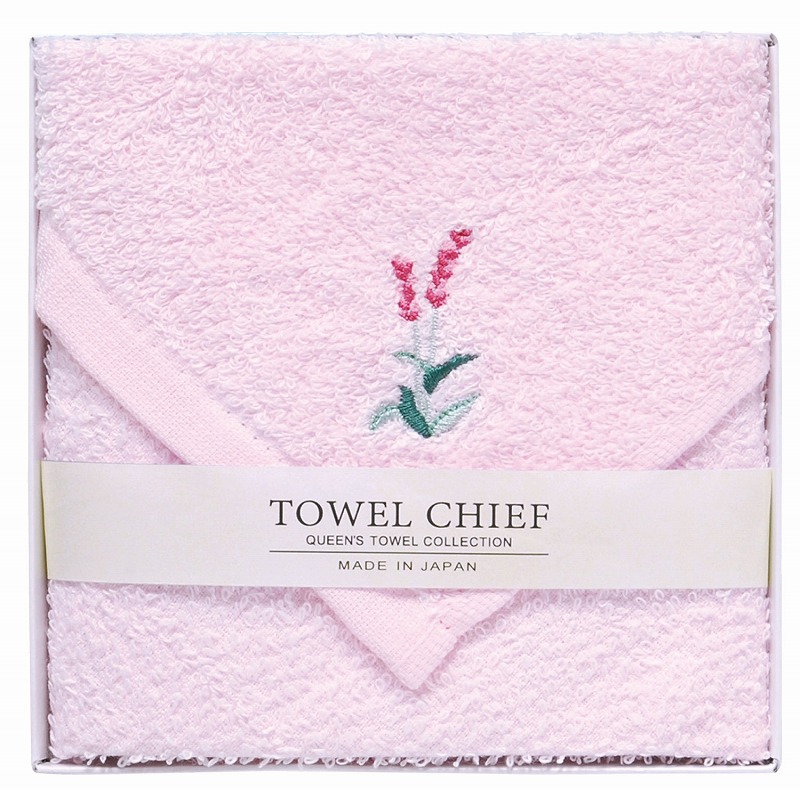 国産の大判タオルハンカチのそれぞれの色の生地に合った草原の花をワンポイントで刺しゅうしたかわいいタオルハンカチに仕上がりました。