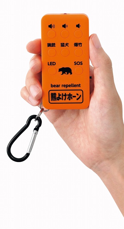 LEDライト付きの熊よけ携帯・発音器!猛犬の吠え声・銃声音・爆竹音でクマを回避。最大110dB。