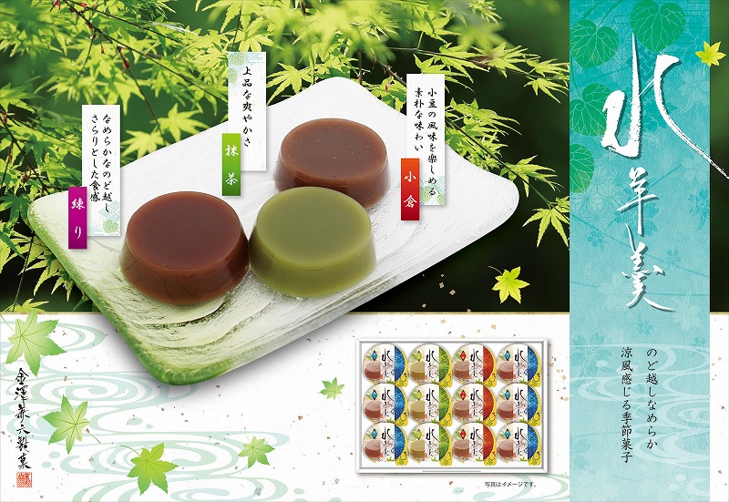 水羊羹小倉 60g×3個、水羊羹練り 60g×6個、水羊羹抹茶 60g×3個