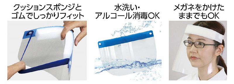 ぴったりゴムバンドタイプ。曇り止め加工済。眼鏡をかけたままでも使用可。