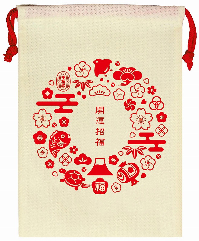不織布巾着袋 開運巾着袋 開運づくし・ベージュ