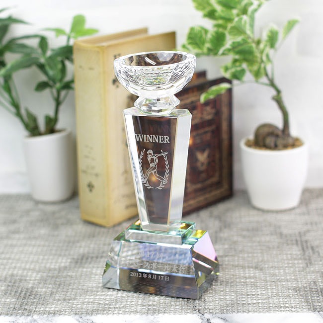 クリスタル製のトロフィーをまとめたカテゴリ。各種記念品や表彰などの記念品向けにレーザー刻印やサンドブラスト加工に対応しています。
