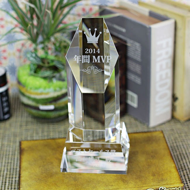 クリスタル製のトロフィーをまとめたカテゴリ。各種記念品や表彰などの記念品向けにレーザー刻印やサンドブラスト加工に対応しています。