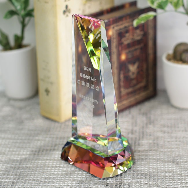 クリスタル製のトロフィーをまとめたカテゴリ。各種記念品や表彰などの記念品向けにレーザー刻印やサンドブラスト加工に対応しています。