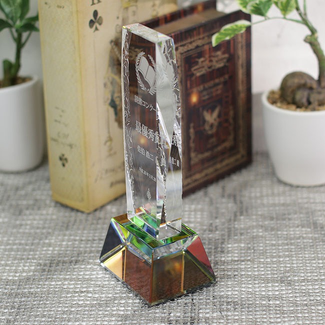 クリスタル製のトロフィーをまとめたカテゴリ。各種記念品や表彰などの記念品向けにレーザー刻印やサンドブラスト加工に対応しています。