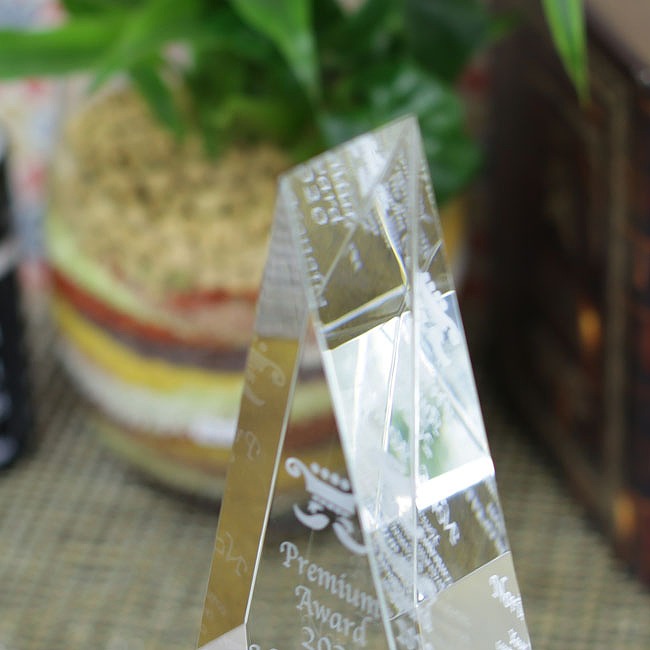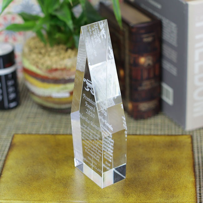 クリスタル製のトロフィーをまとめたカテゴリ。各種記念品や表彰などの記念品向けにレーザー刻印やサンドブラスト加工に対応しています。