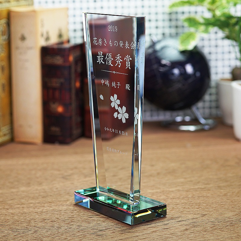 クリスタル製のトロフィーをまとめたカテゴリ。各種記念品や表彰などの記念品向けにレーザー刻印やサンドブラスト加工に対応しています。