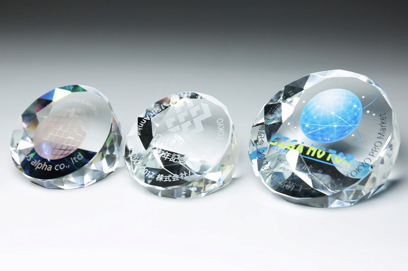 クリスタル製のペーパーウェイトをまとめたカテゴリ。各種記念品や表彰などの記念品向けにレーザー刻印やサンドブラスト加工に対応しています。