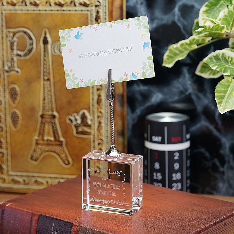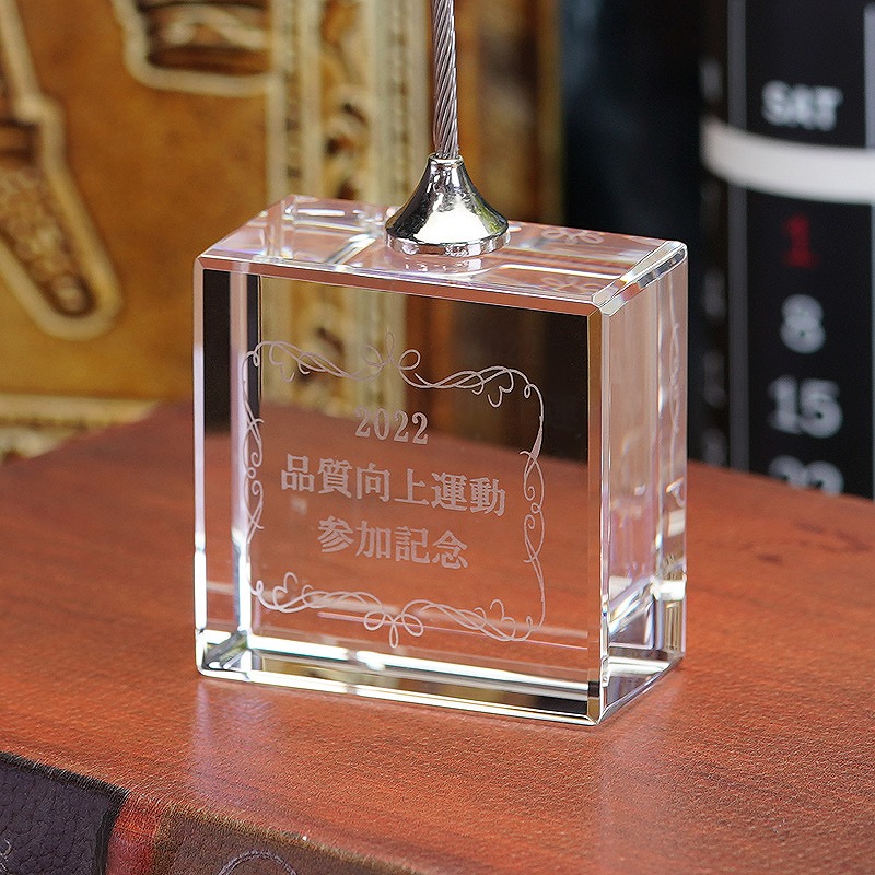 クリスタル製のペーパーウェイトをまとめたカテゴリ。各種記念品や表彰などの記念品向けにレーザー刻印やサンドブラスト加工に対応しています。