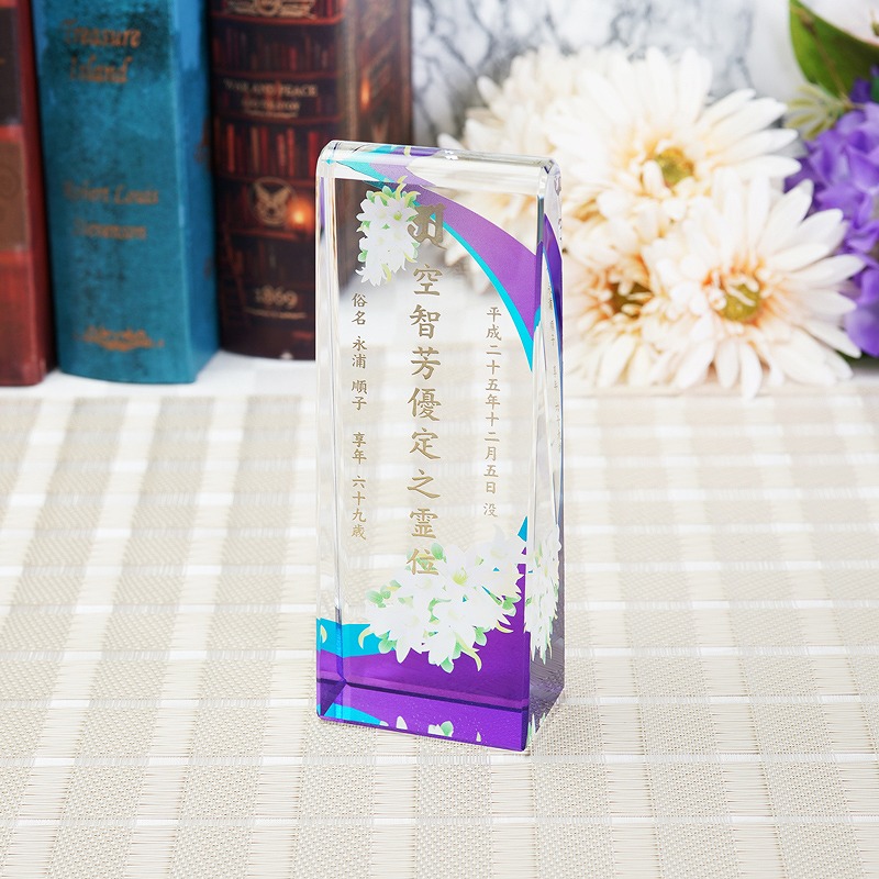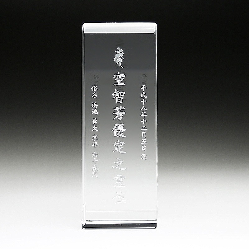 クリスタル製の位牌や仏器・仏具をまとめたカテゴリ。サンドブラスト加工にも対応しています。
