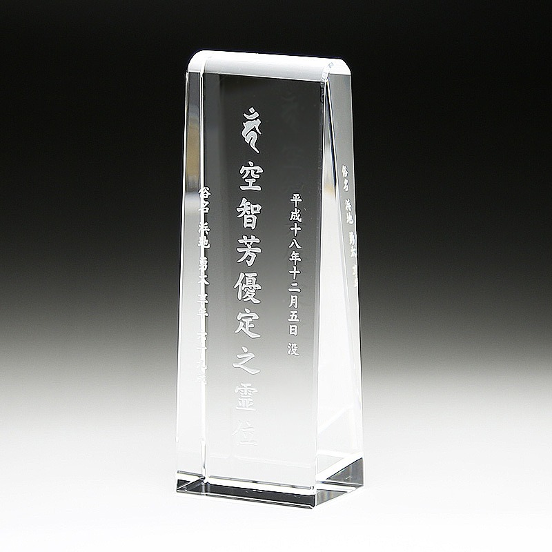 クリスタル製の位牌や仏器・仏具をまとめたカテゴリ。サンドブラスト加工にも対応しています。