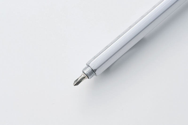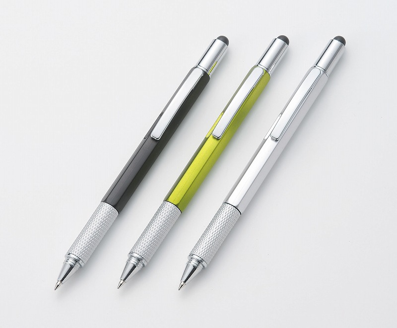 この1本に5つの機能を集約した多機能ツール。スタイリッシュなフォルムだからスーツの胸ポケットにも映えます。 ■機能:ボールペン、タッチペン、スケール、水平器、プラスドライバー、マイナスドライバー■ドイツ製黒インク使用/0.7mm