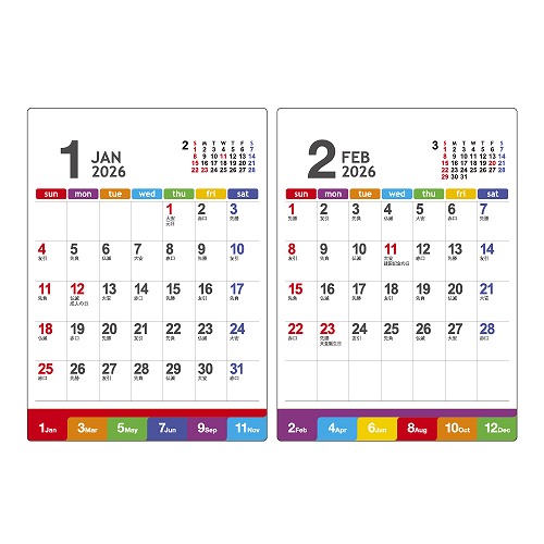 セパレート・ツーマンス・7カラーズ 卓上カレンダー 2026 [名入れ代込]