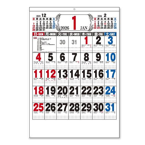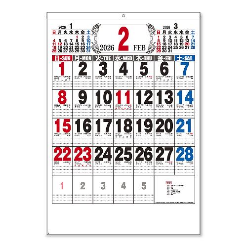 A2厚口文字月表 壁掛カレンダー 2026 [名入れ代込]