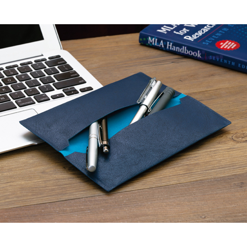 ”販促品 ノベルティ グッズ” 『カラモ レザー調ダブルペンケース(ネイビー)』