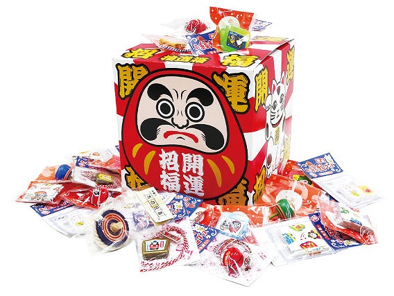 お正月グッズアソート×100コ/ディスプレイボックス×1コ/お持ち帰り袋×30枚/店頭用お知らせPOP×2枚