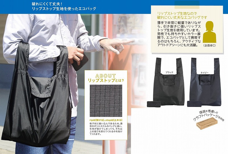リップストップ生地なので破れにくい丈夫なエコバッグです。