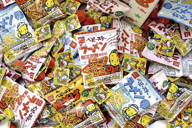 セット明細 ラーメン系スナック菓子…約180個 お持ち帰り袋…100枚 つかみバサミ…2個