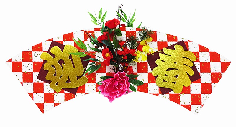 ”店舗 業務用 物販向け” 『[店舗装飾品] 市松扇迎春パネル両面』