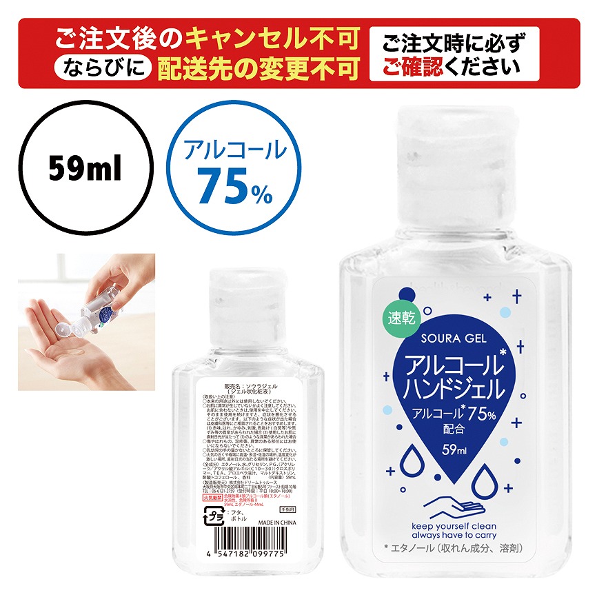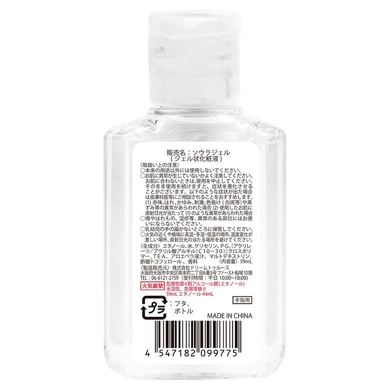 [オリジナルラベル差替え代込] アルコール配合ソウラジェル(携帯用)59ml
