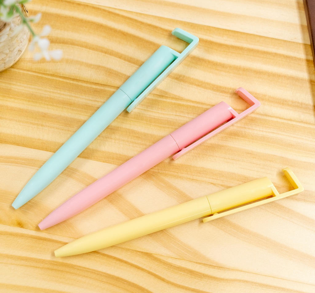 スマホスタンド付き抗菌ボールペン イエロー