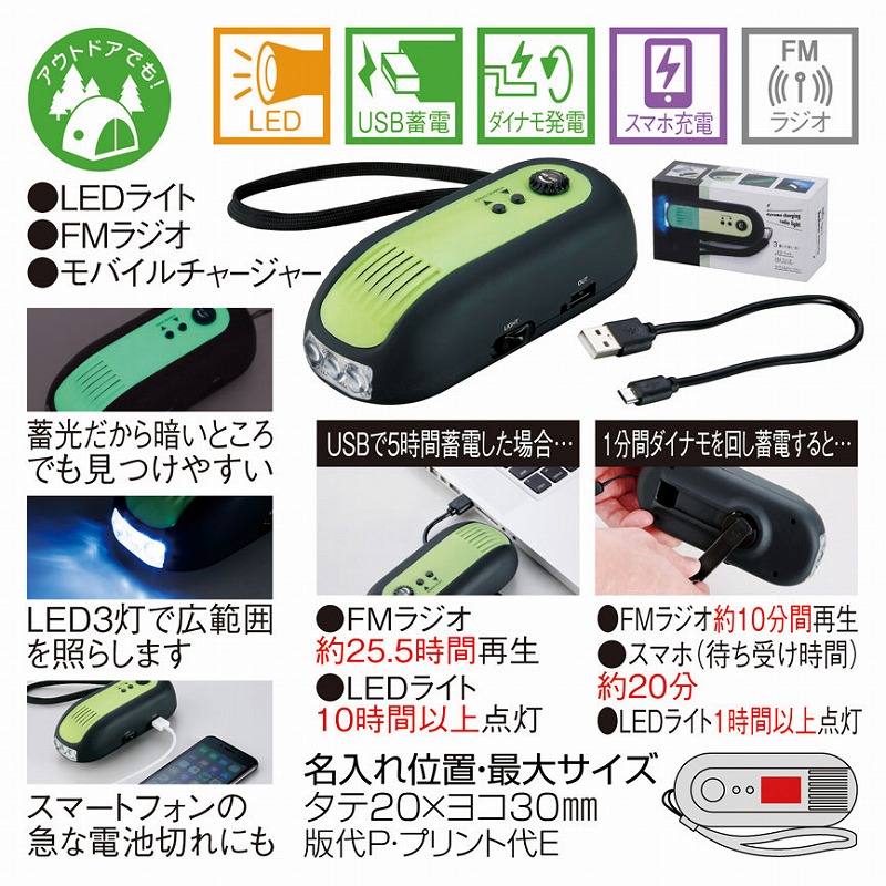 ”啓発 防犯 防災 グッズ” 『蓄光ダイナモ式充電ラジオライト』