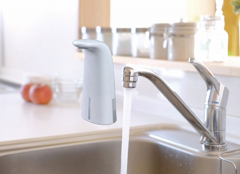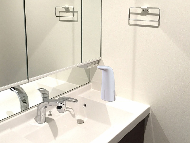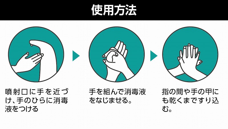 手を触れずに消毒液がスプレーできる!