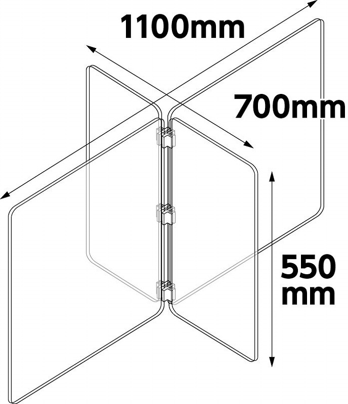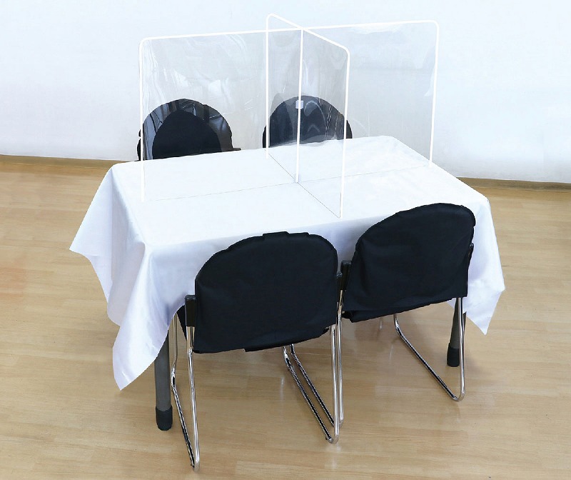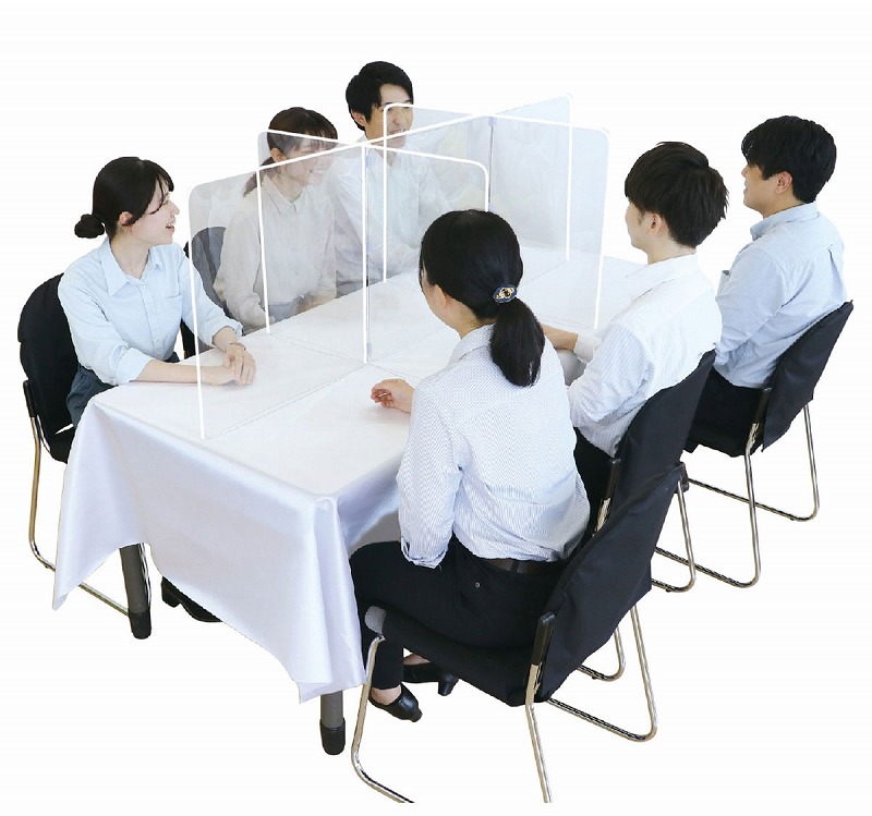●十字型の4人用パーテーション●拡張性に優れており、6人用、8人用など 用途に応じてパーテーションを追加できます●透明度の高いPET素材でアルコールや 洗剤での清拭が可能●平たくたたんだ状態で保管できます●角R加工で、安心・安全アクリルより割れにくい!